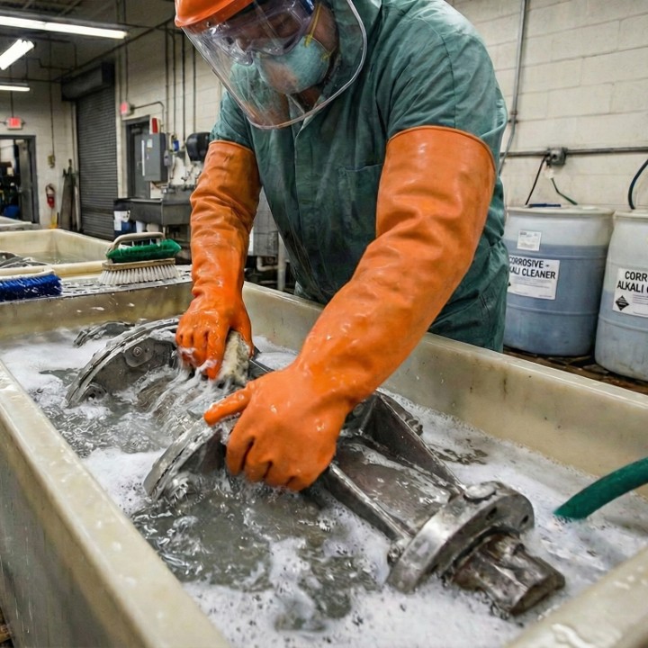 ・全長約60cm、厚さ約0.8mm、極厚の天然ゴム製超ロング手袋です。
